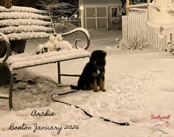We have had German Shepherds as part of our family for more than 30 years. We did a lot of research before deciding to purchase our next dog at Southwest Shepherds. We are glad we did. Our puppy (Jack) is now 5 months old. He shows the three characteristics of a GSD that are critical. He must be calm, confident and intelligent. Without any one of these three things your dog can be a real disappointment. Jack embodies all these things. Having been around the breed for more than three decades we know the difference. Some of these characteristics can be nurtured by a loving owner who is a skilled trainer, but only to a very minor extent. Breeding is critical. Absent solid breeding a GSD will potentially not have these critical characteristics. Southwest Shepherd's thoughtful approach to breeding ensures that your GSD will have them. Yes, they have to be nurtured by you but if not present in the dog's breeding you will be disappointed. All puppies are cute. Jack is now 5 months old and I can clearly see the superior breeding. He is supremely calm, confident and intelligent. Not only that, he is stunningly beautiful. We get compliments everywhere he goes. I hope Kitty and Marc will post the pictures and videos I have provided of Jack. They will demonstrate what quality their breeding program produces. Additionally, it will give you an idea of what you might expect of your dog at 5 months. GSDs require good owners. Ensure you understand completely how to train and socialize your new family member. Doing so in combination with the excellent breeding at Southwest Shepherds will provide you a dog you can be proud of and enjoy for many, many years.